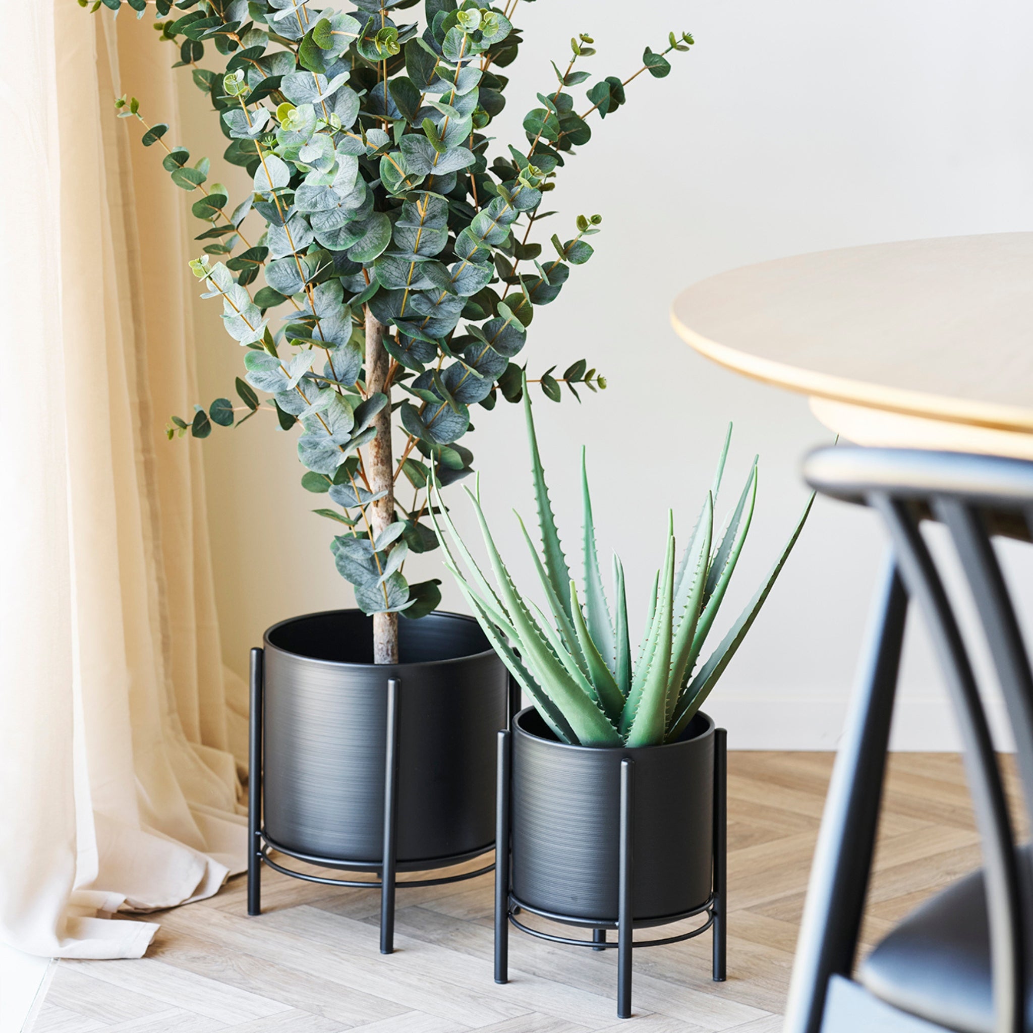 Den minimalistiska designen i pulverlackerat svart stål gör krukorna till ett tidlöst tillskott i både moderna och klassiska hem. Tack vare den robusta konstruktionen är de slitstarka och stabila – perfekta för både dekorativa växter och praktisk användning. Levereras monterade och klara att använda direkt.