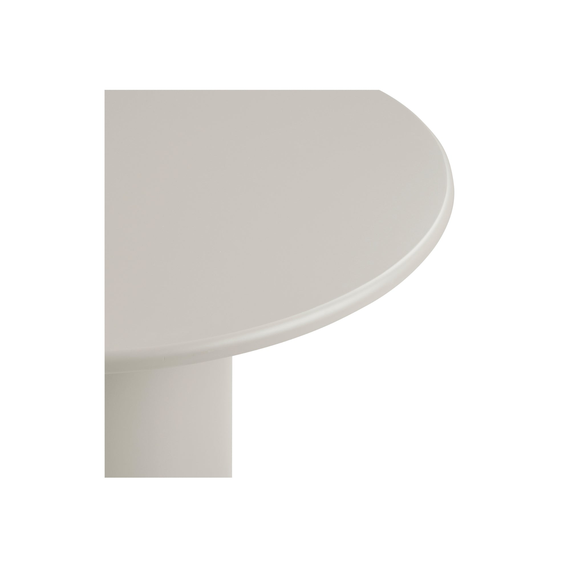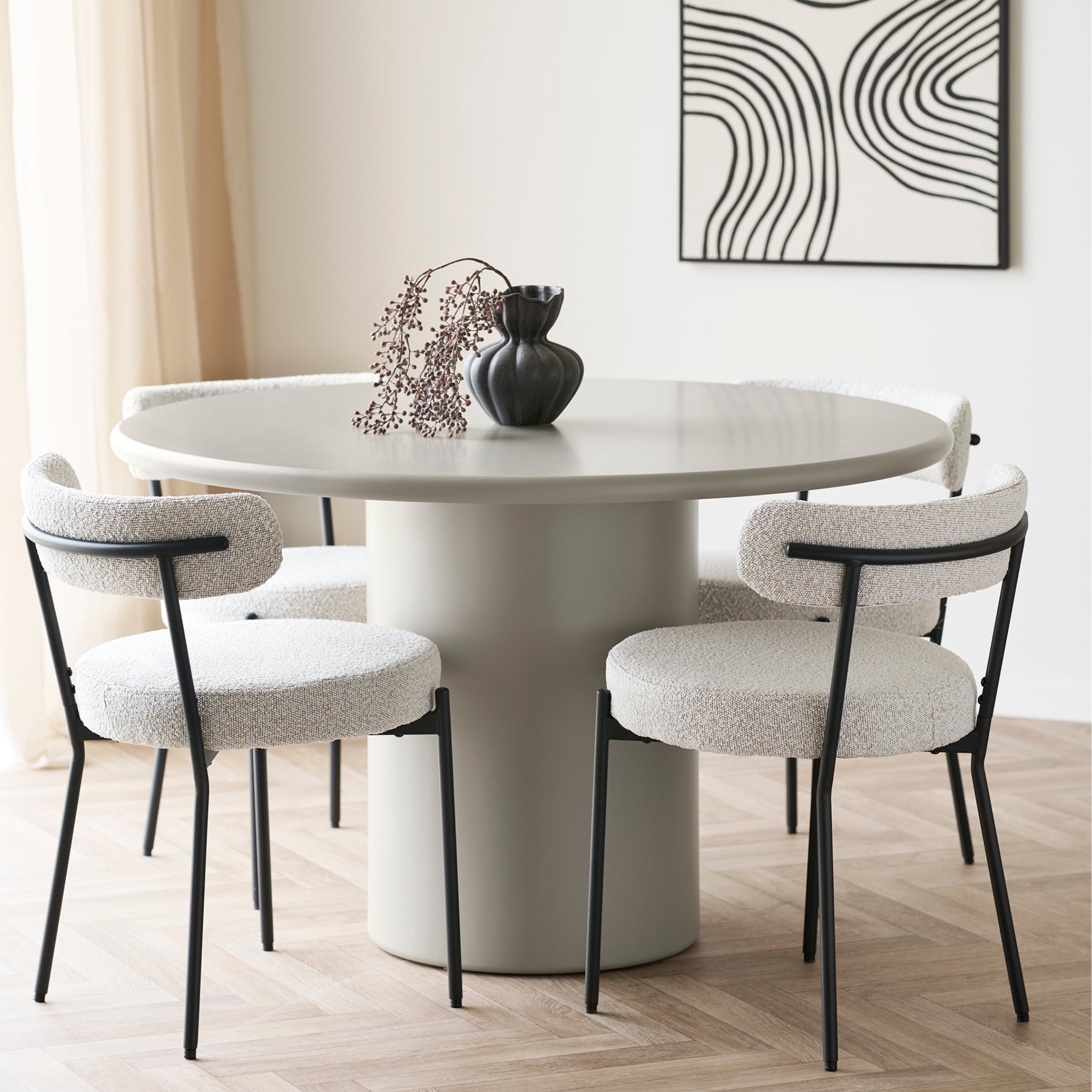 Med en diameter på 120 cm och höjd på 75 cm erbjuder bordet gott om plats för fyra till sex personer – perfekt för både vardagsmiddagar och sociala tillfällen. Den släta, sandfärgade ytan ger ett varmt och naturligt intryck som passar de flesta inredningsstilar.