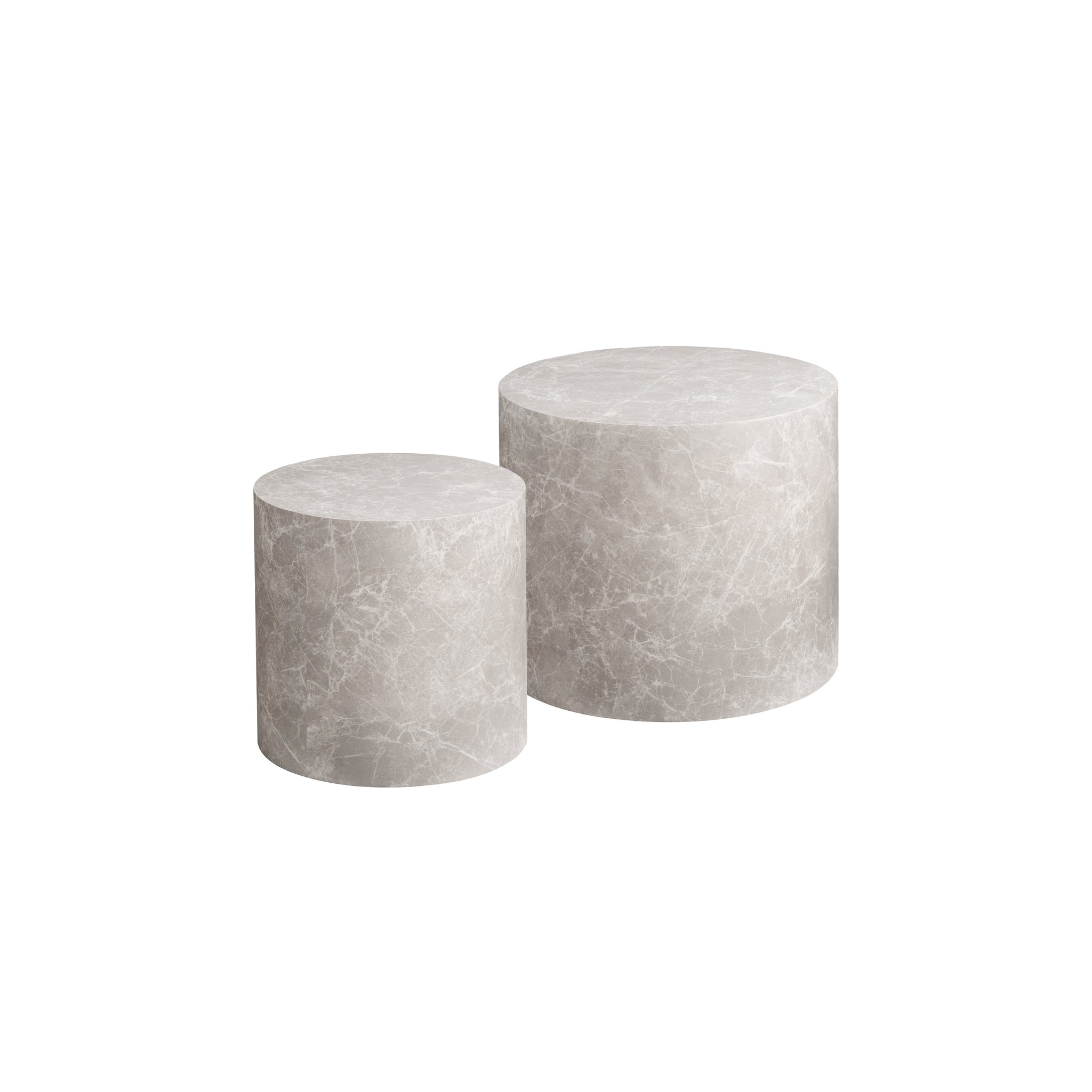 Prague Soffbord är ett stilrent soffbordsset i beige marmorerad design som ger ditt vardagsrum en modern och elegant känsla. Setet består av två runda bord i olika storlekar (Ø38 cm och Ø48 cm), vilket gör dem perfekta att placera tillsammans för en lager-på-lager-effekt eller använda var för sig för flexibilitet i inredningen.