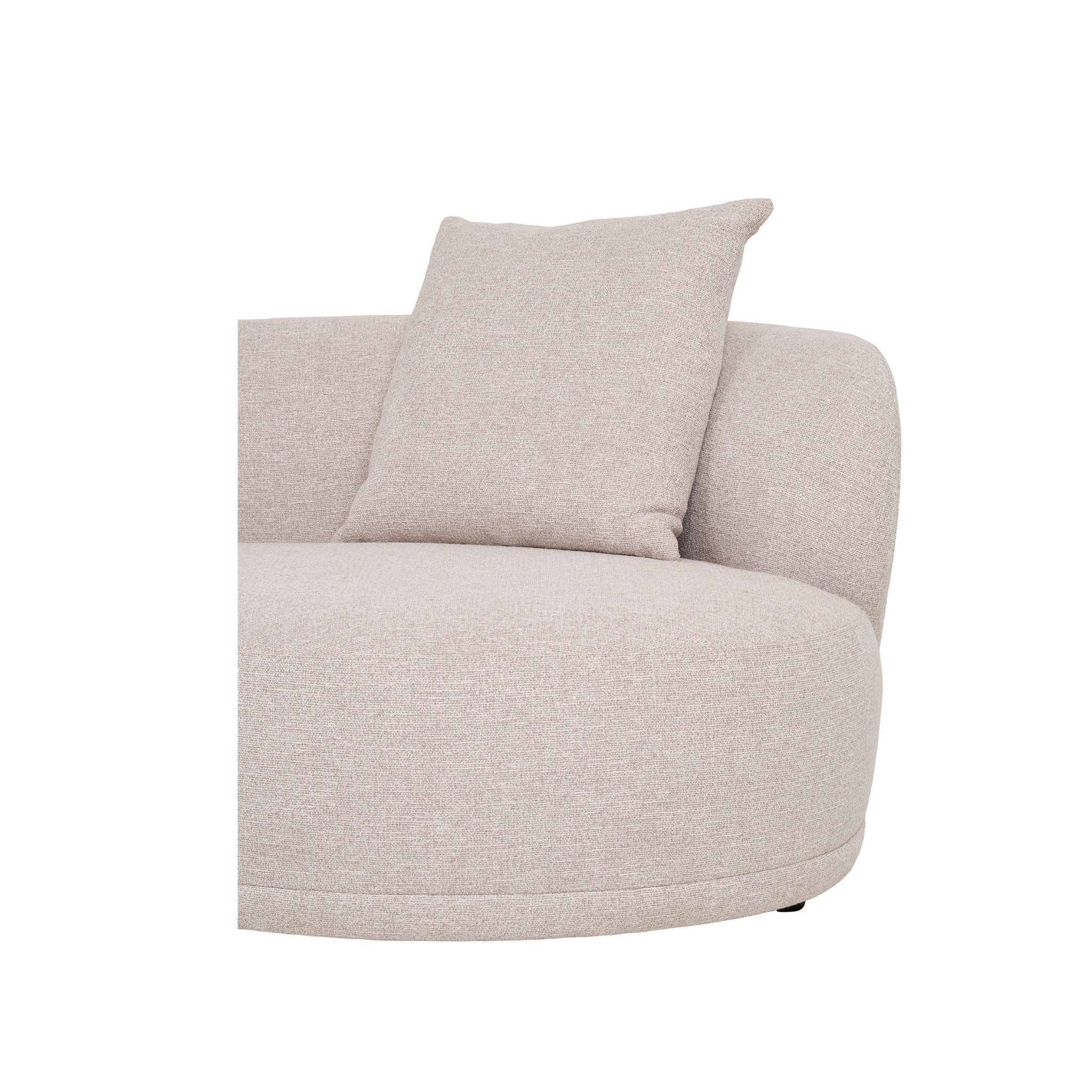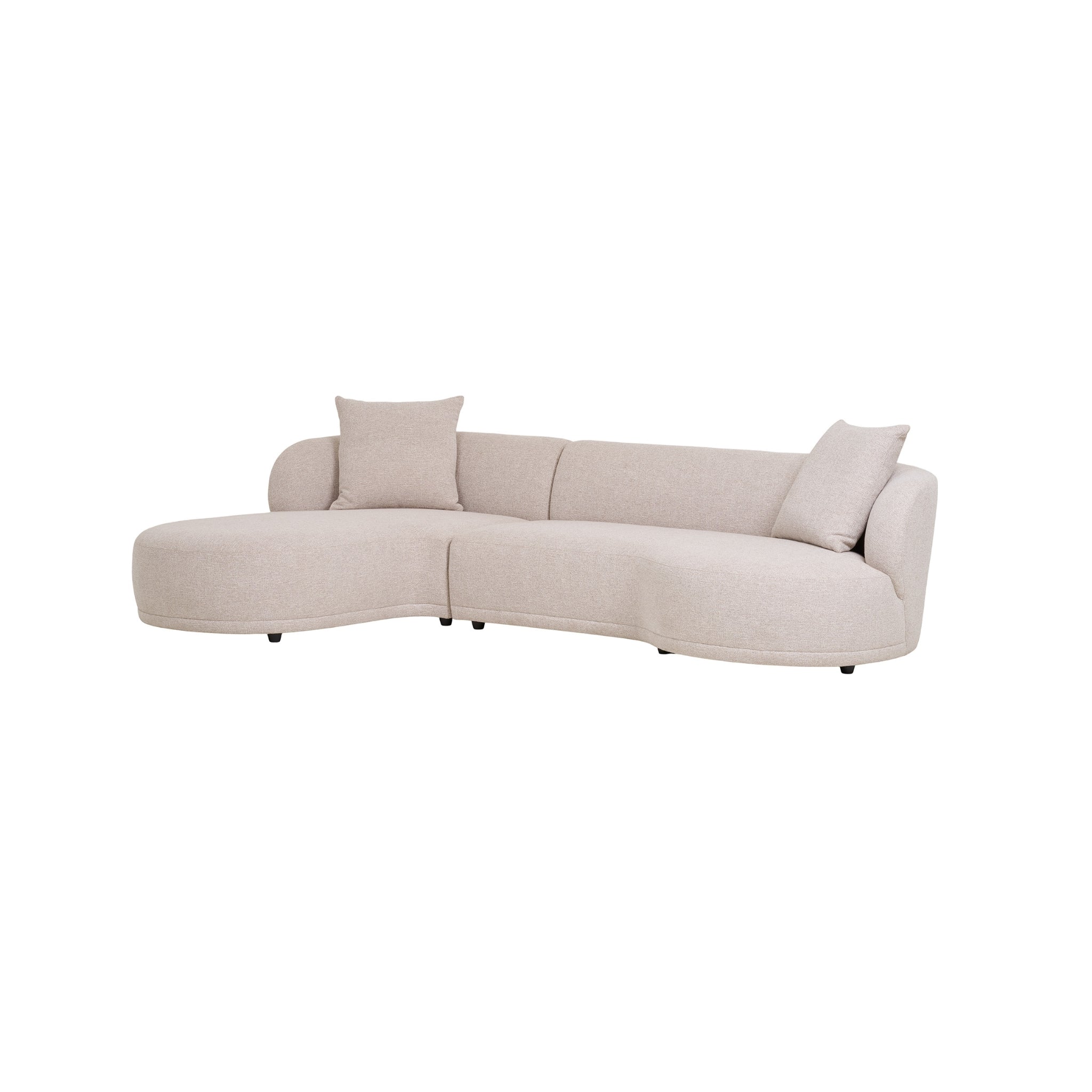 Kingston lounge soffa är en exklusiv och rymlig hörnsoffa som kombinerar modern design med hög komfort. Klädd i ett slitstarkt tyg (72% polyester, 28% akryl) i naturlig ton och med generöst sittdjup blir den en elegant mittpunkt i vardagsrummet eller loungen.