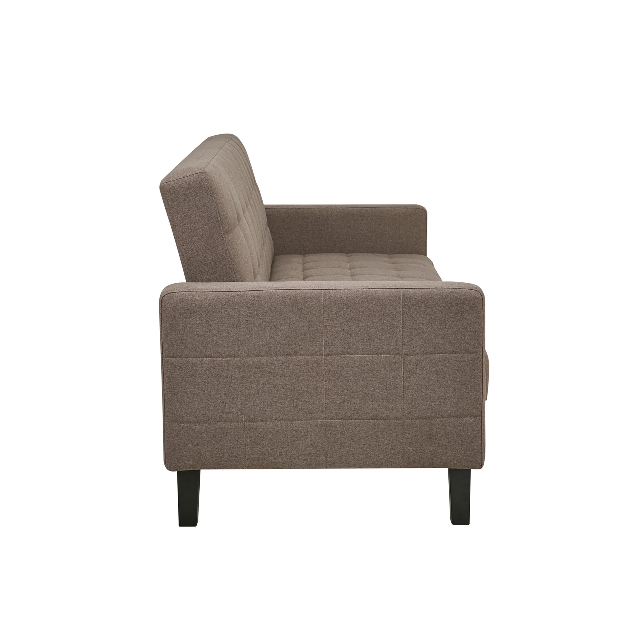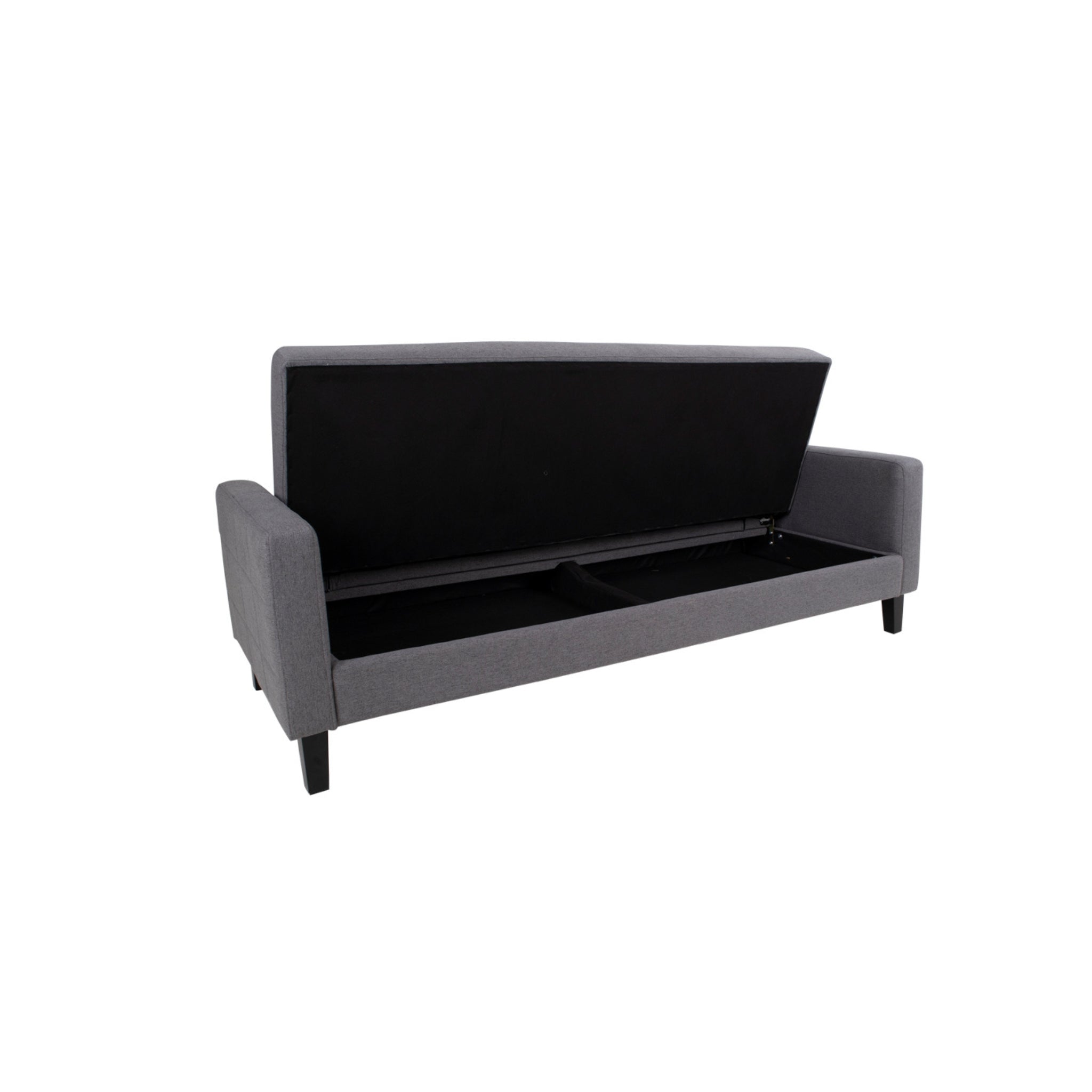 Milton bäddsoffa från House Nordic i brun polyester med svart träben. Praktisk förvaring och stilren design – perfekt för hem och gästrum.